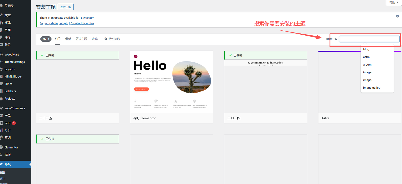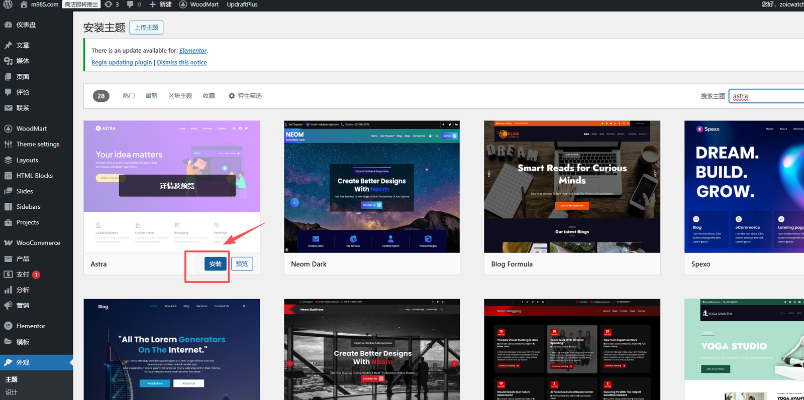 - 安装主题:找到喜欢的主题后,将鼠标悬停在其上方,会出现 “安装” 按钮,点击它。
